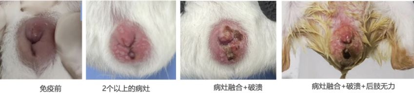 豚鼠模型是抗HSV-2研发中不可替代的金标准,因其能完整模拟人类生殖器疱疹自然史,生殖结构与人类高度相似:感染后可在背根神经节建立潜伏,并自发出现周期性复发及无症状排毒。该模型提供多维量化终点,可同步评估药物或疫苗对急性症状、复发及潜伏感染的综合效果。但建立稳定、可重复的豚鼠感染模型具有挑战性。而构建能再现自发性周期性复发的模型则更为困难,其涉及复杂的免疫与神经调控机制,对实验设计与长期监测要求极高。